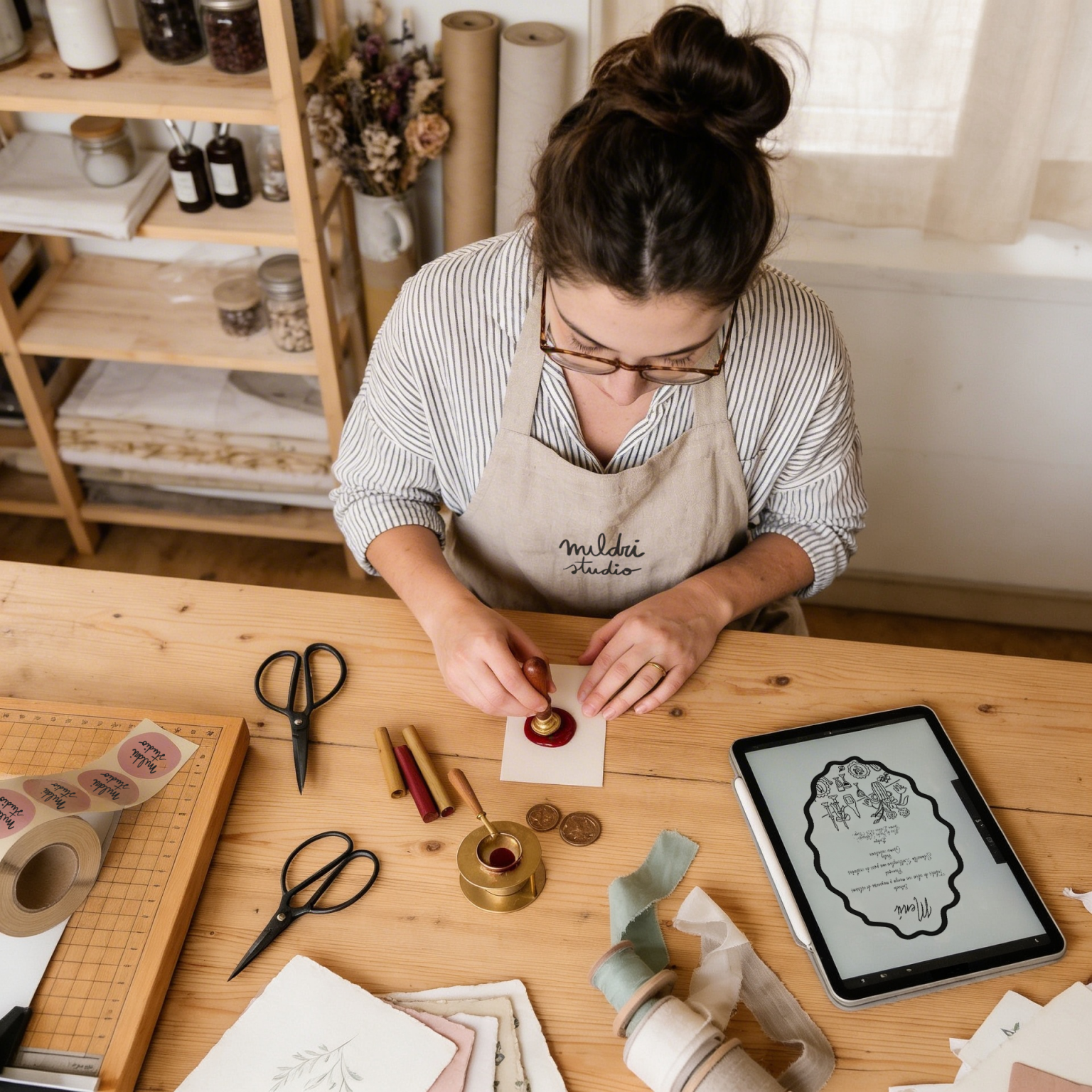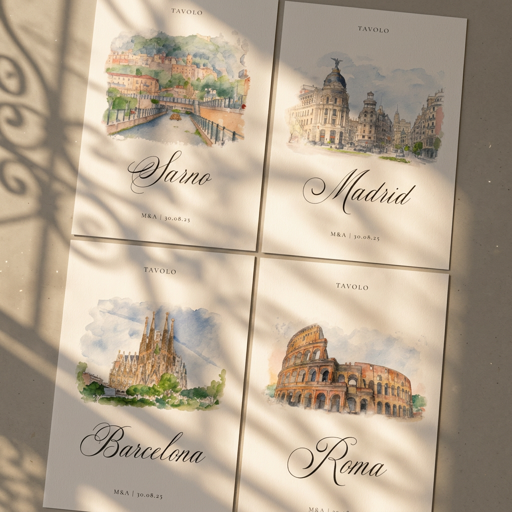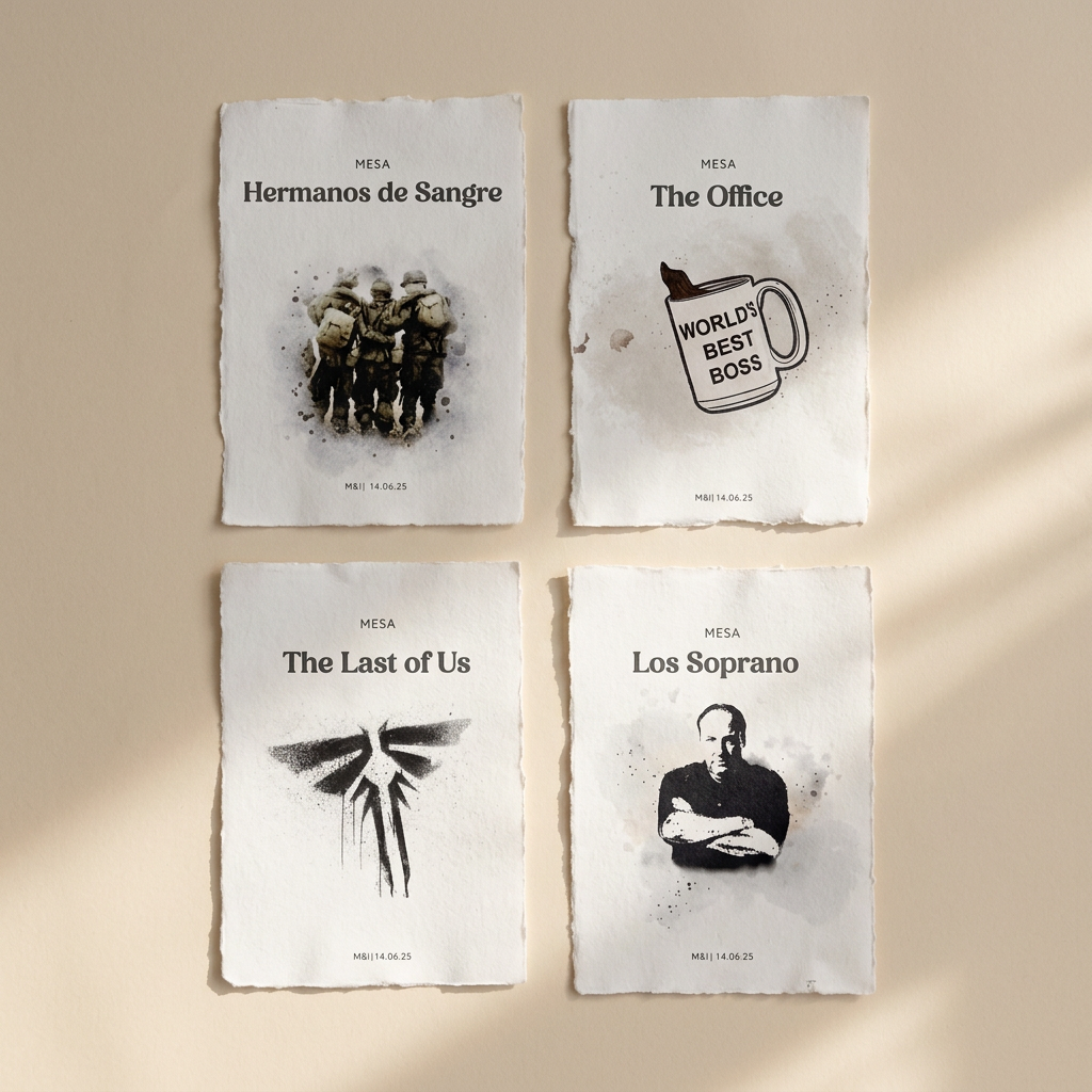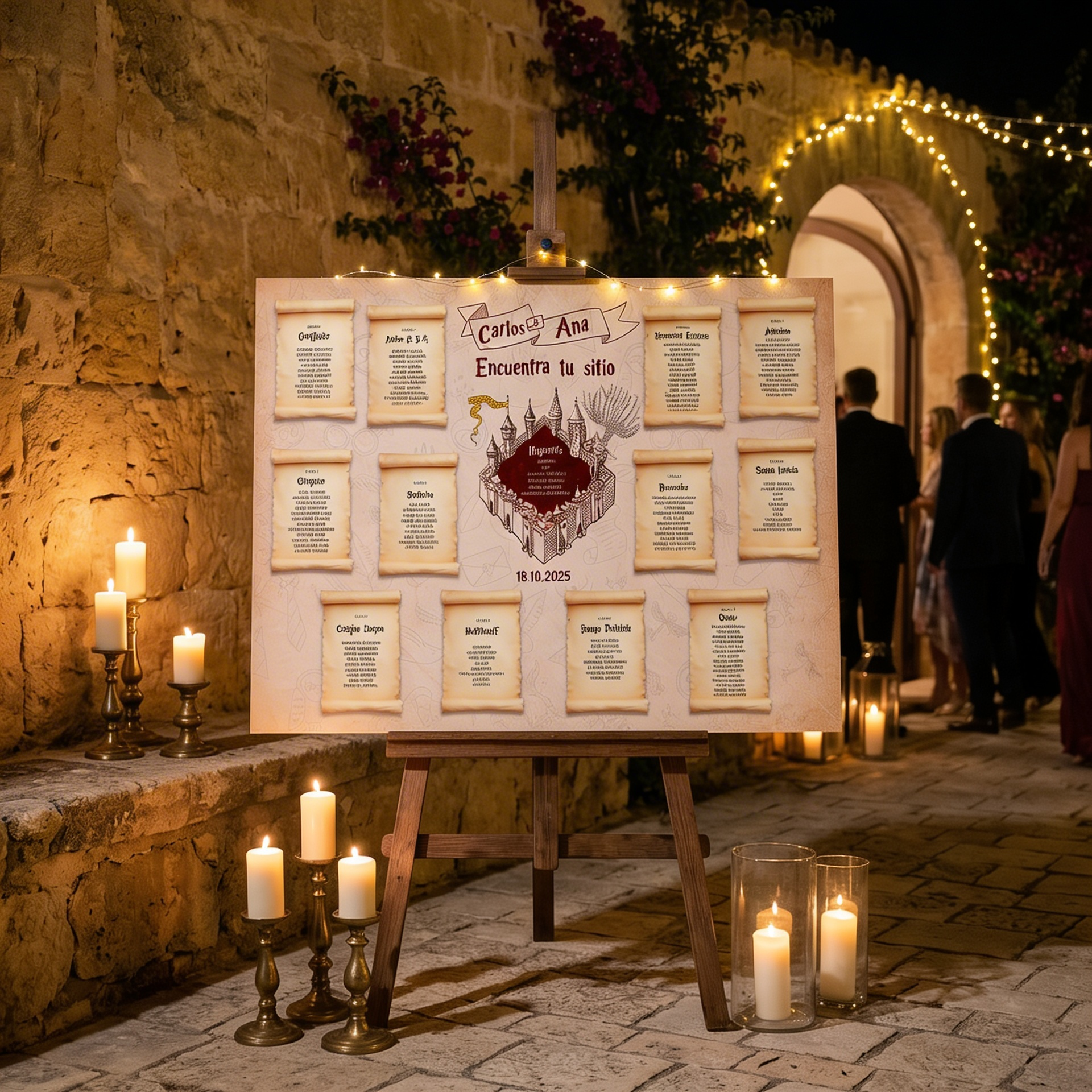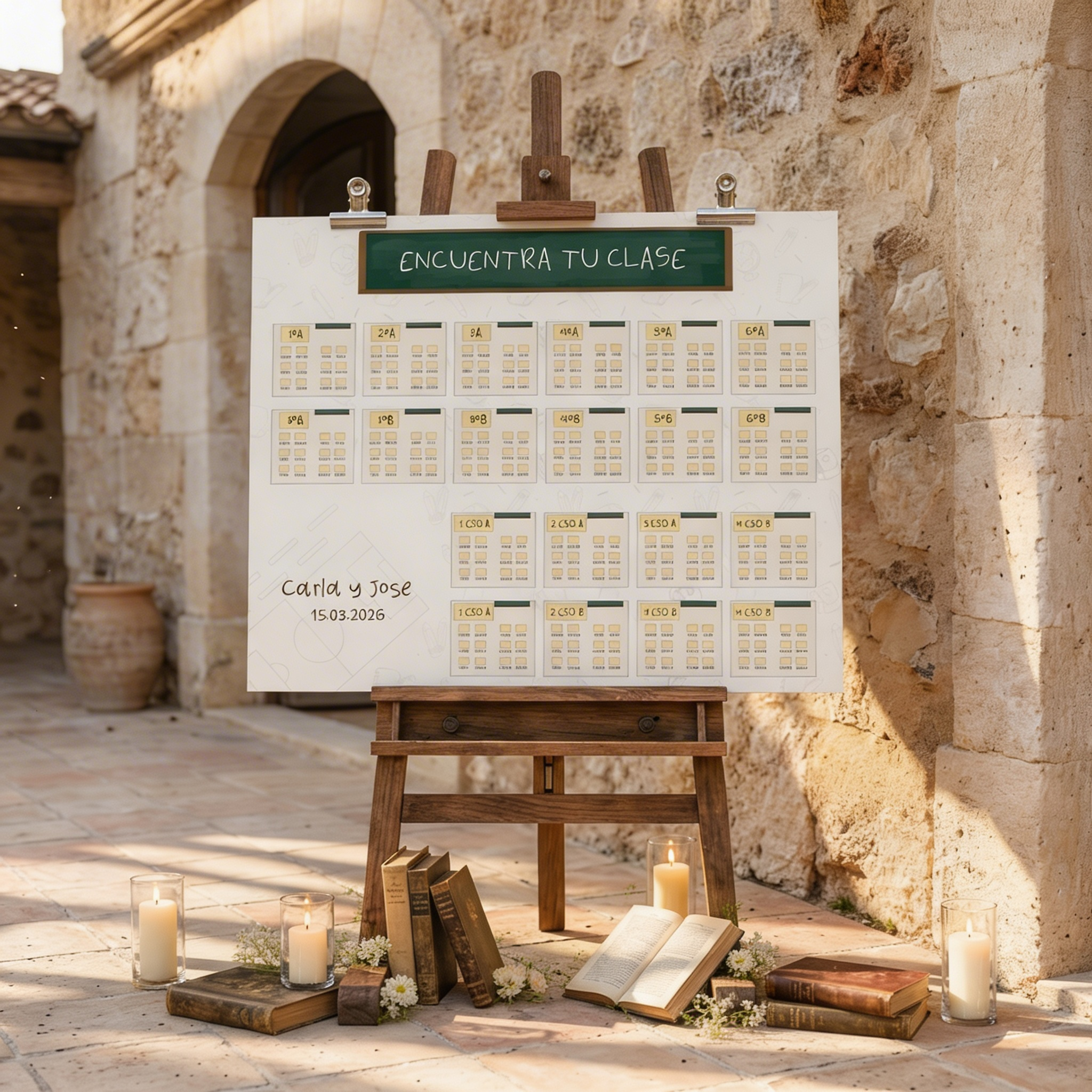 Empiezo a crear cada elemento: invitaciones, papelería, seating plan, cartelería y detalles. Os voy enseñando el proceso y ajustamos lo necesario para que todo encaje exactamente con lo que imagináis.