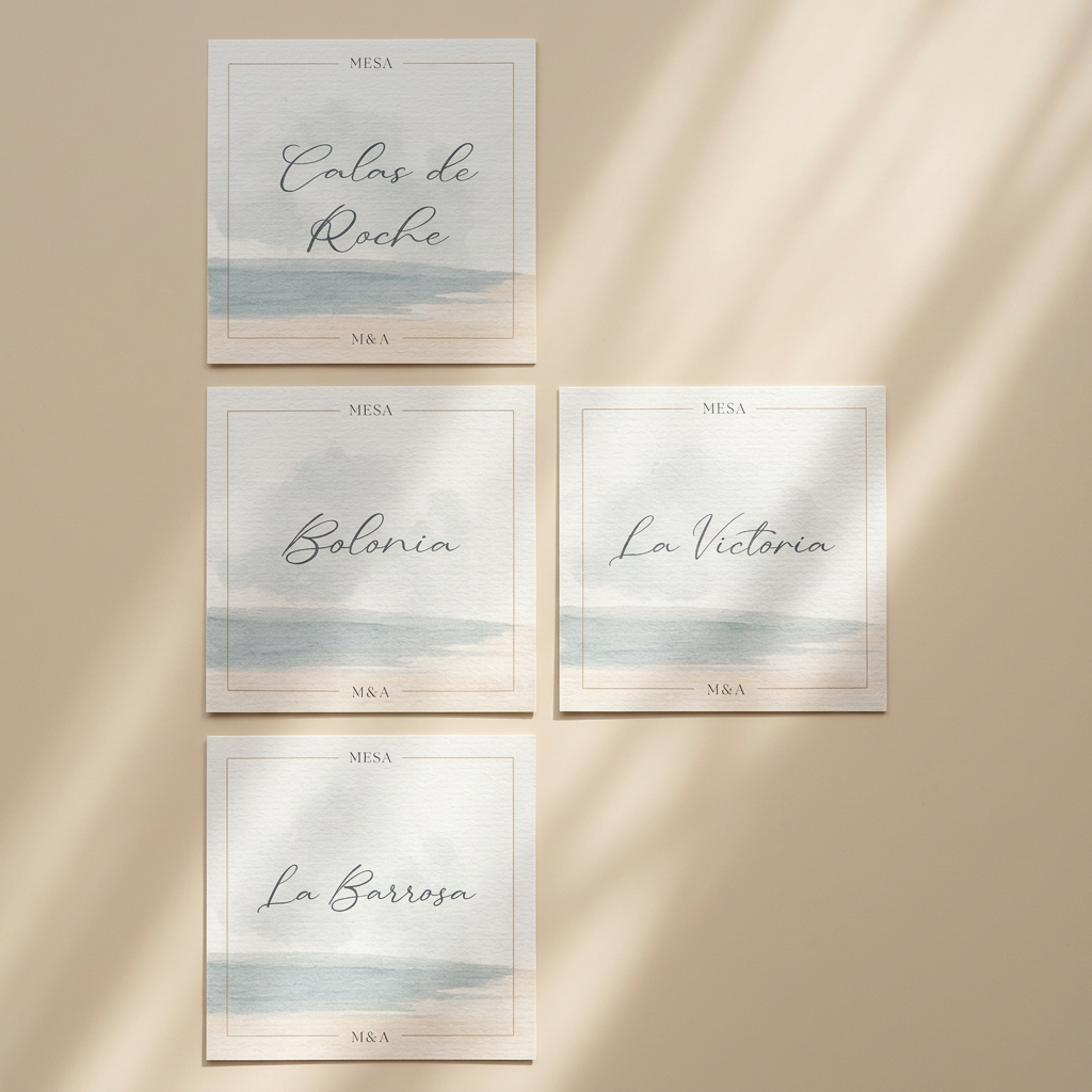 Carteles de bienvenida, seating plan y piezas decorativas creadas para integrarse con armonía en la estética de vuestra boda.