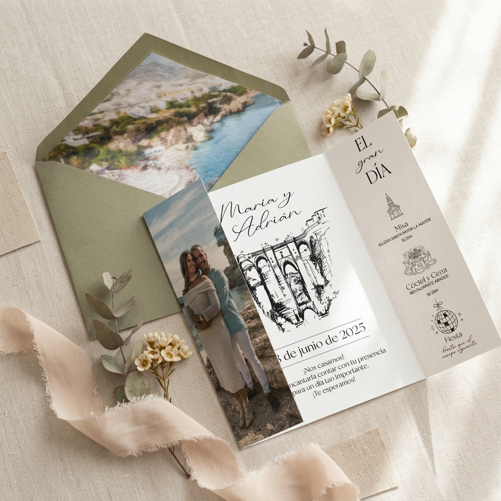 Diseños únicos que anticipan la esencia de vuestra boda desde el primer momento
