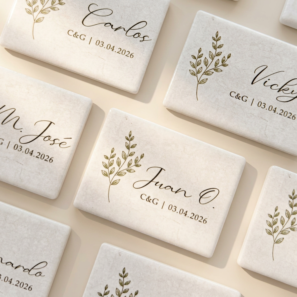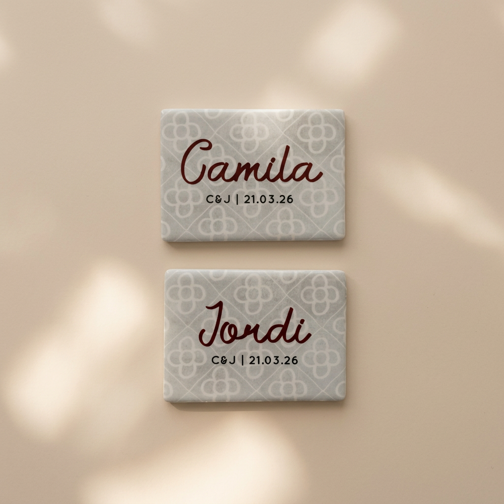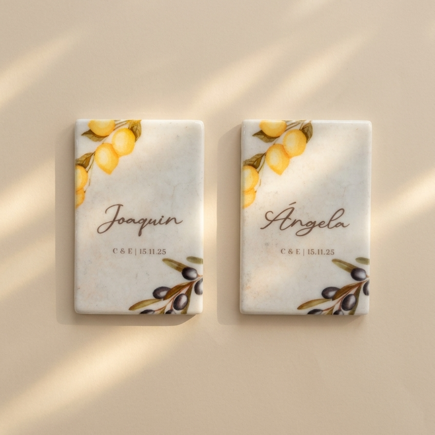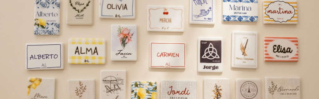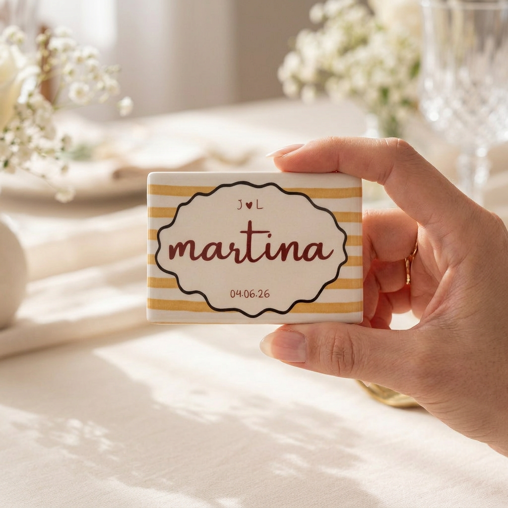 Los marcasitios de cerámica no son solo un elemento funcional. Forman parte de la estética de la boda. Crean una experiencia cuidada desde el primer momento. Cada invitado encuentra su sitio… y descubre un detalle pensado solo para él