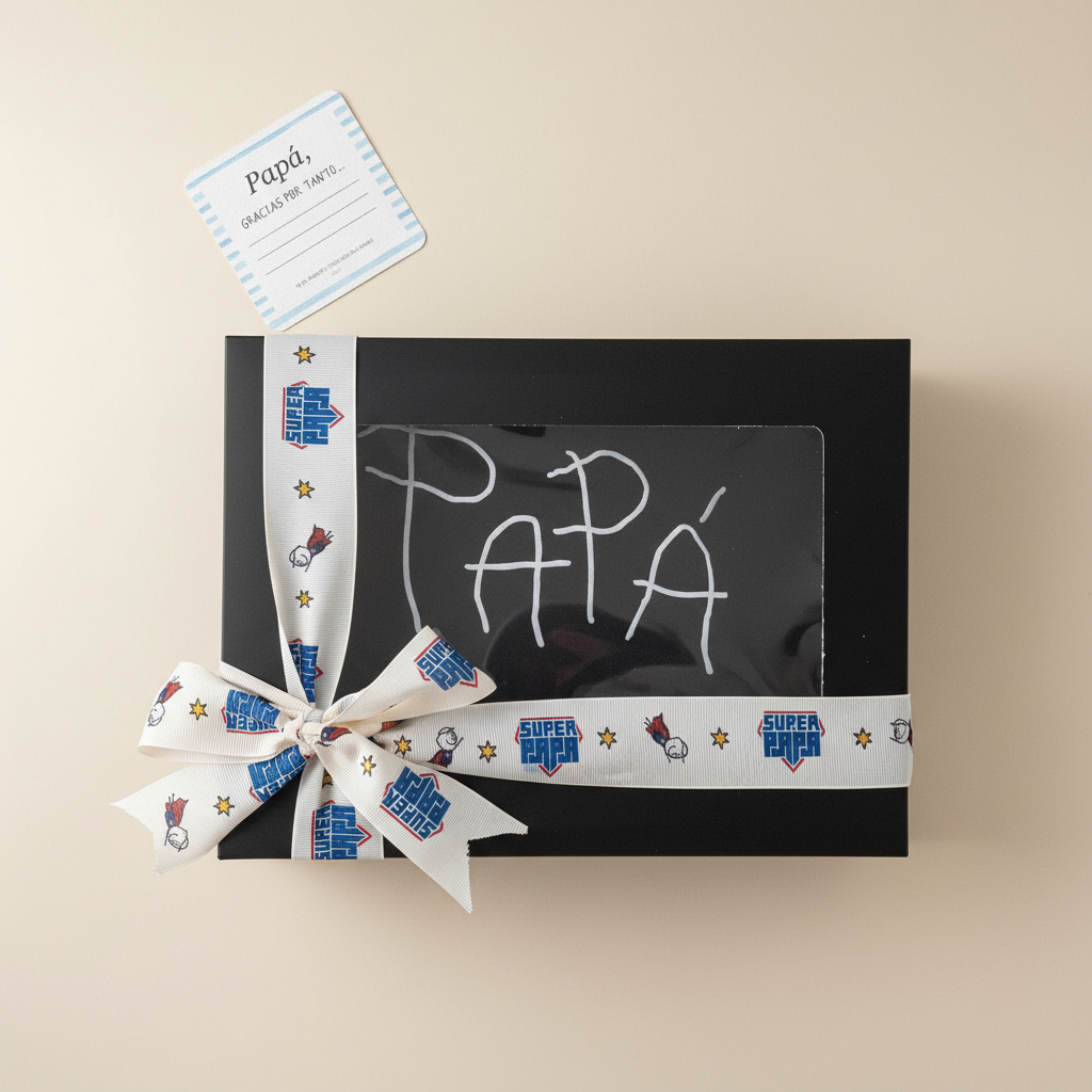 Viene presentada en un estuche de cartón con lazo de Superpapá.