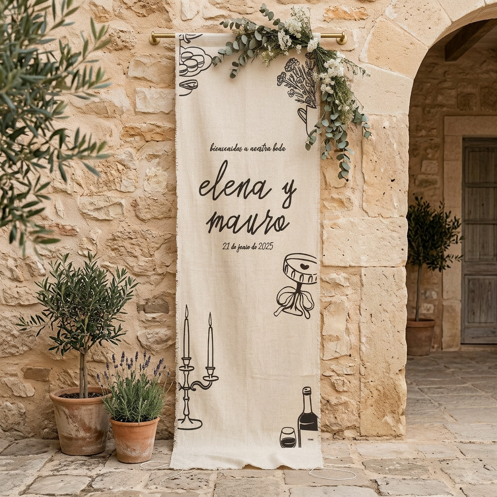 Simplemente, rellena vuestros nombres, frase y fecha de la boda. Sé que es un día importante y queréis tenerlo todo bajo control, así que antes de imprimir, te enviaré vía Whatsapp una prueba para que veas el resultado final y compruebes que todo está bien.